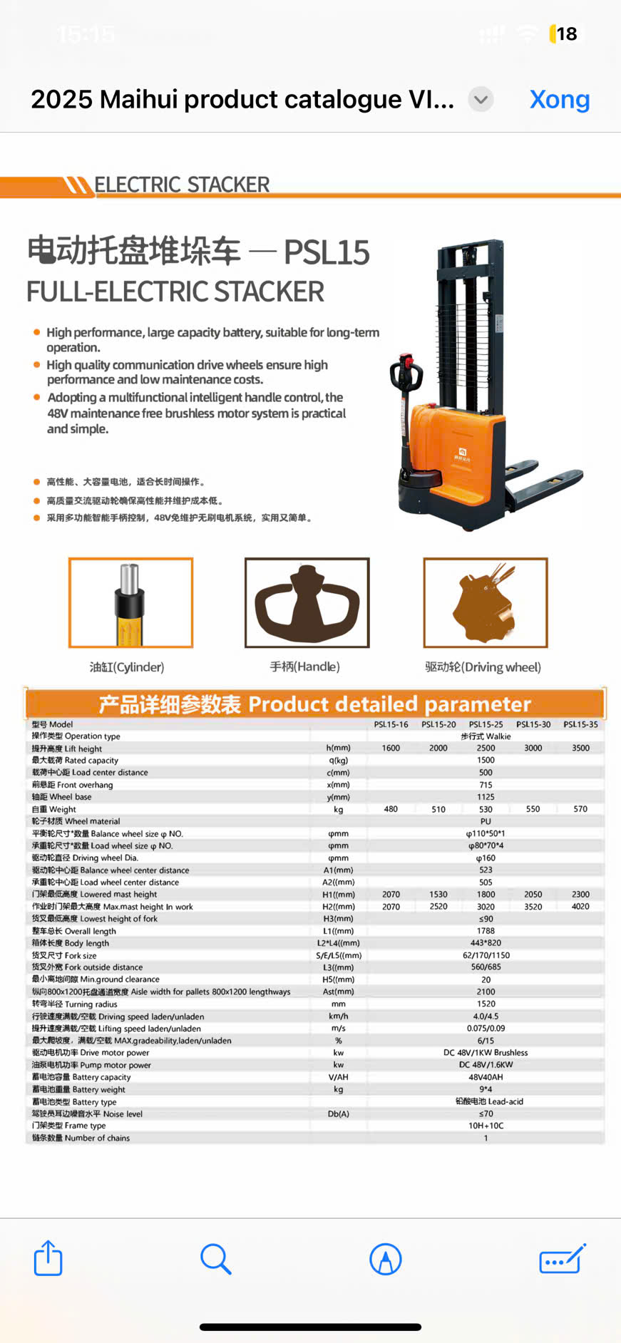 Xe nâng Stacker điện tự động 1,5 tấn cao 3,5m PSL15-(3,5m)